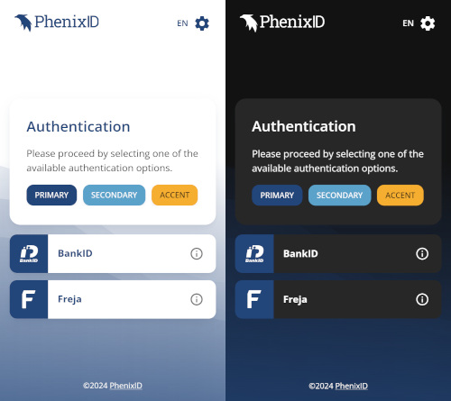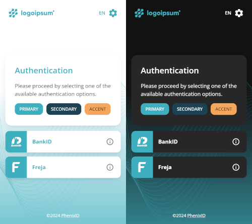 PAS gives you the ability to create themes and change the look of the authentication UI. A theme includes options such as colors, background and logo, both in light and dark mode.